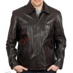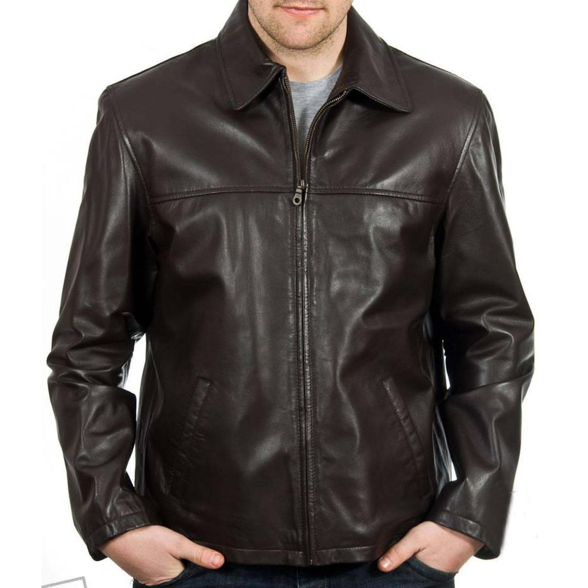 This men’s dark tan leather jacket in a classic blouson zip design that offers smart and casual versatility and comfort wear for all occasions.